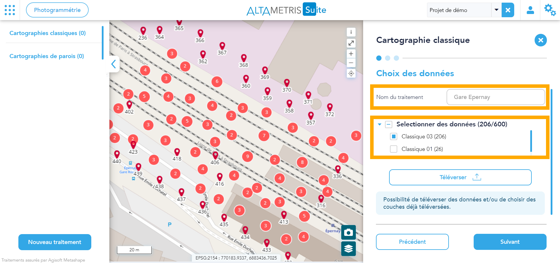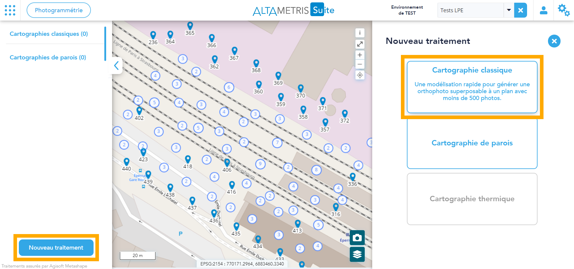 Pour créer une cartographie classique, cliquez sur le bouton « Nouveau traitement » puis « Cartographie classique ».