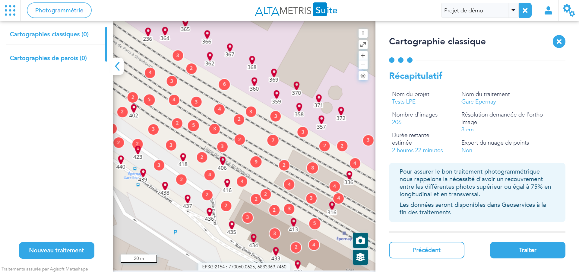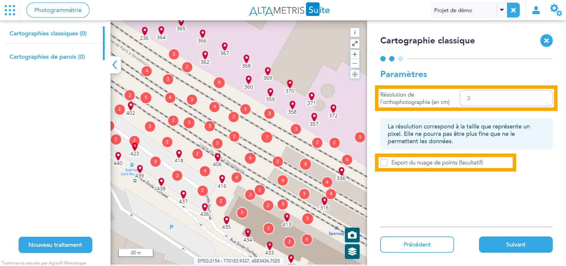 Choisissez ou non si vous souhaitez l’export du nuage de points photogrammétrique (il pourra être par la suite visualisé dans Geoservices).