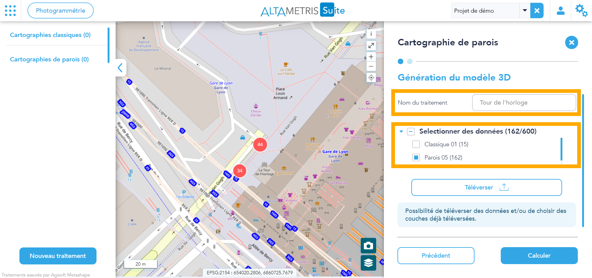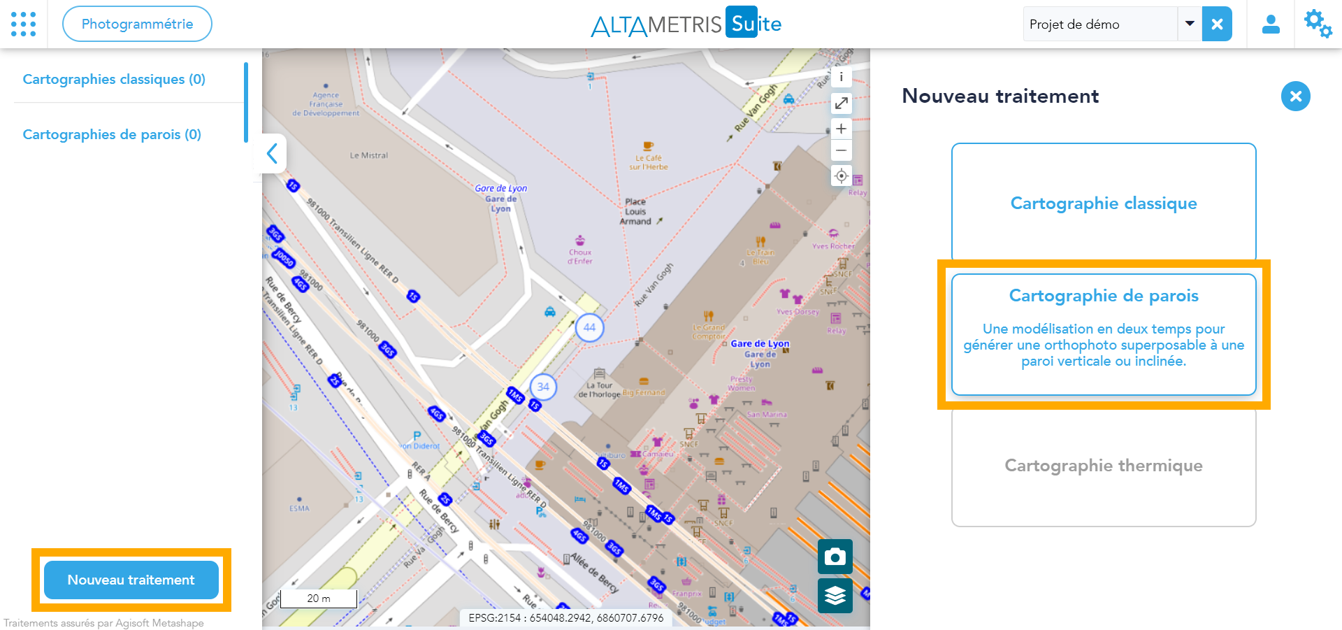Pour créer une cartographie classique, cliquez sur le bouton « Nouveau traitement » puis « Cartographie de parois ».