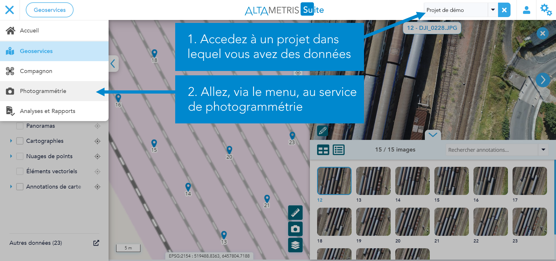 Ensuite, allez via le menu, au service de photogrammétrie.